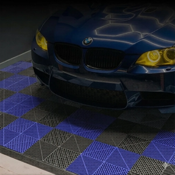 Upgrade your garage aesthetics with 3D Textured Anti-Slip Modular Garage Flooring Tiles, featuring a distinctive cross-pattern surface for maximum grip and stability. Built for high-performance use, these tiles resist wear, stains, and pressure from vehicles.
